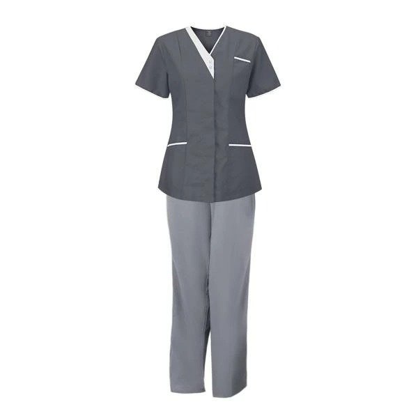 Stylish two-tone medical scrub set, comfortable and available in multiple colors, perfect for daily wear in clinics and hospitals.