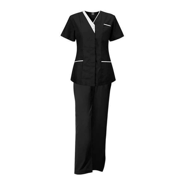 Stand out with refined style and practical comfort in this classic two-tone women’s medical scrub set. The top features crisp white accents on the collar and pockets, adding a professional touch, while the matching pants offer a sleek contrast. Made from high-quality, soft, and flexible fabric, this scrub set ensures comfort throughout long shifts. Designed with a flattering fit and functional pockets for essential tools. Available in a variety of elegant colors to suit different tastes and healthcare team uniforms. Ideal for nurses, doctors, and medical professionals.